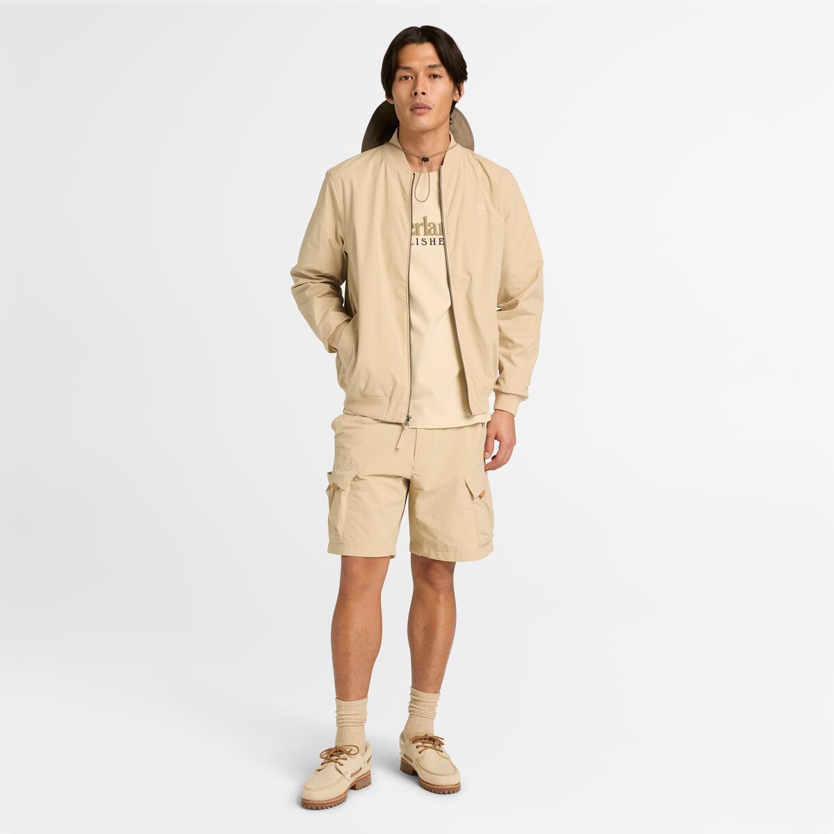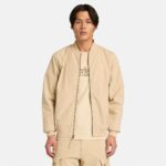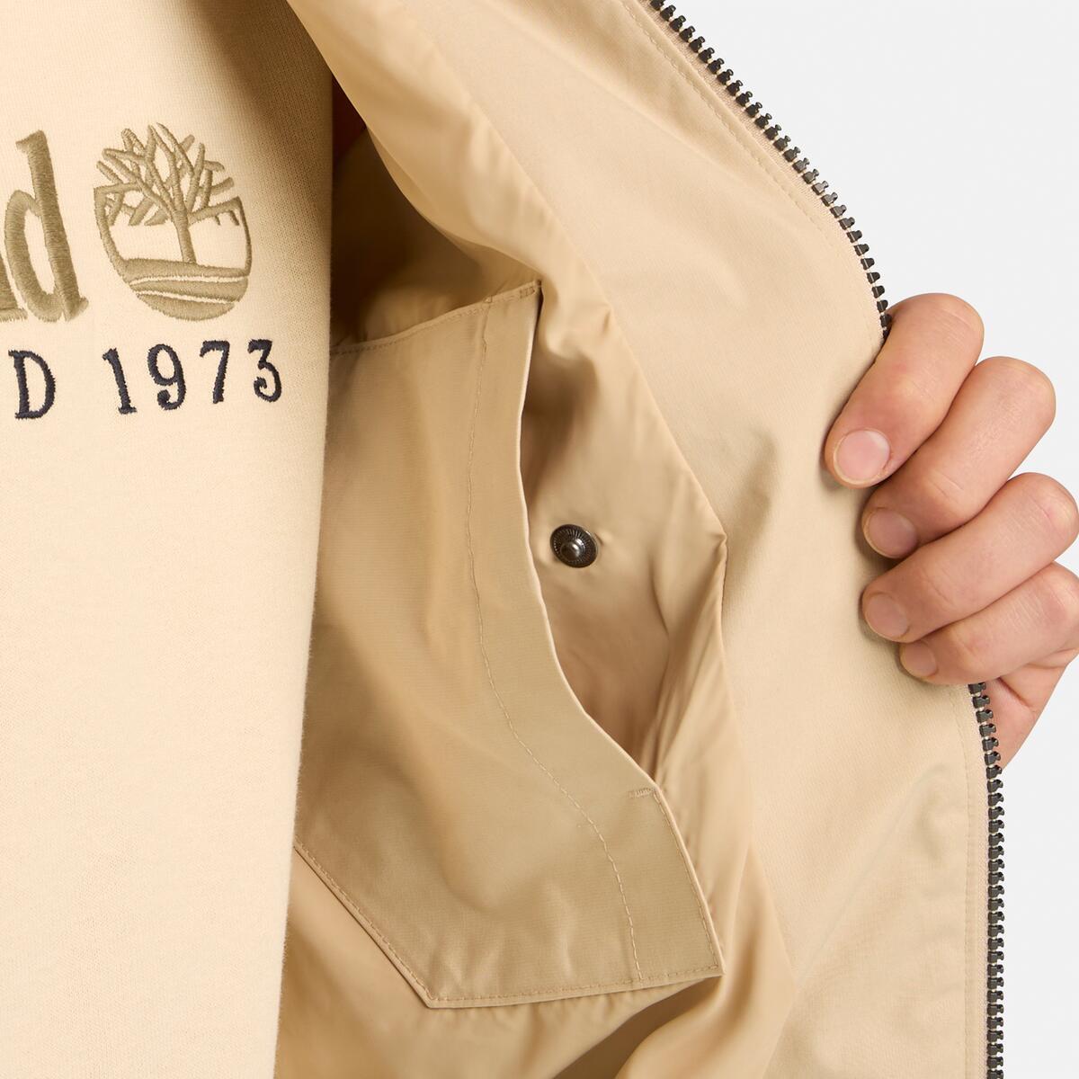 Rooted in heritage and built for the elements, Timberland designed this Men’s Bomber Jacket with water repellent technology, 55% ReBOTL™ polyester fabric containing at least 40% recycled polyester, and a classic ribbed bomber collar. Finished with a full zip opening and side pockets.