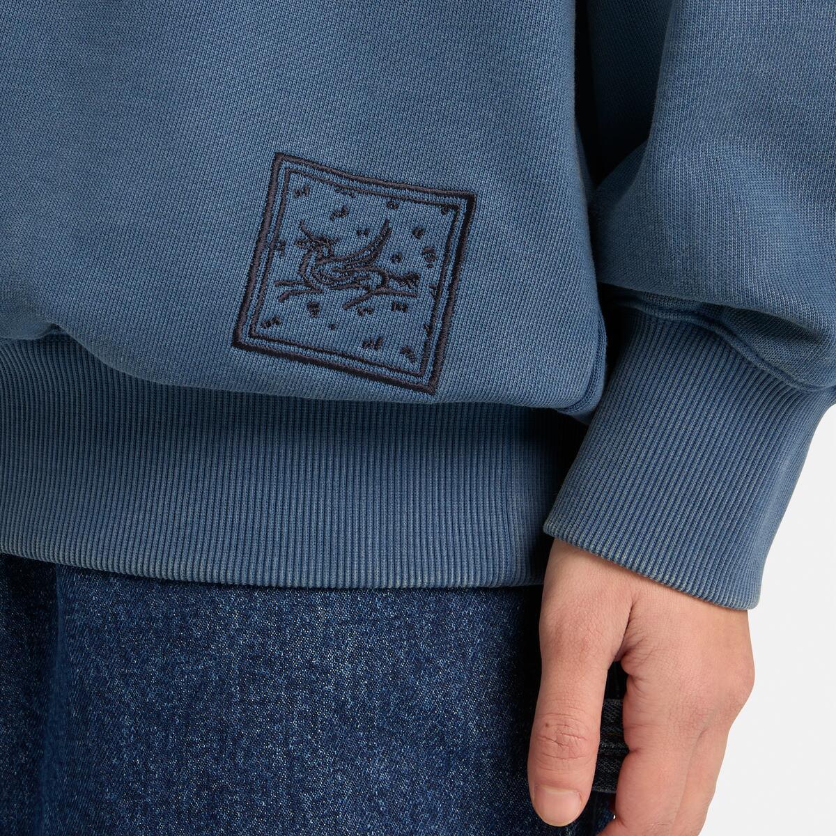 Fabric Description: Knit|Fabric Composition: 80% Cotton, 20% Polyester|Center Back Length: 27.875″|Weight: 390 g|Graphic woven label|Loopback|Box Fit|Crewneck|Imported