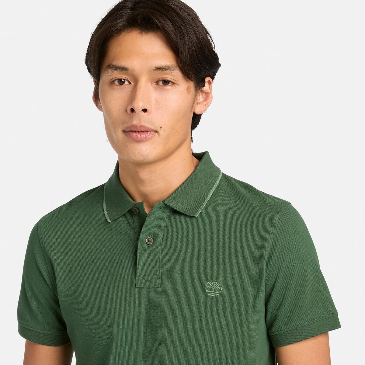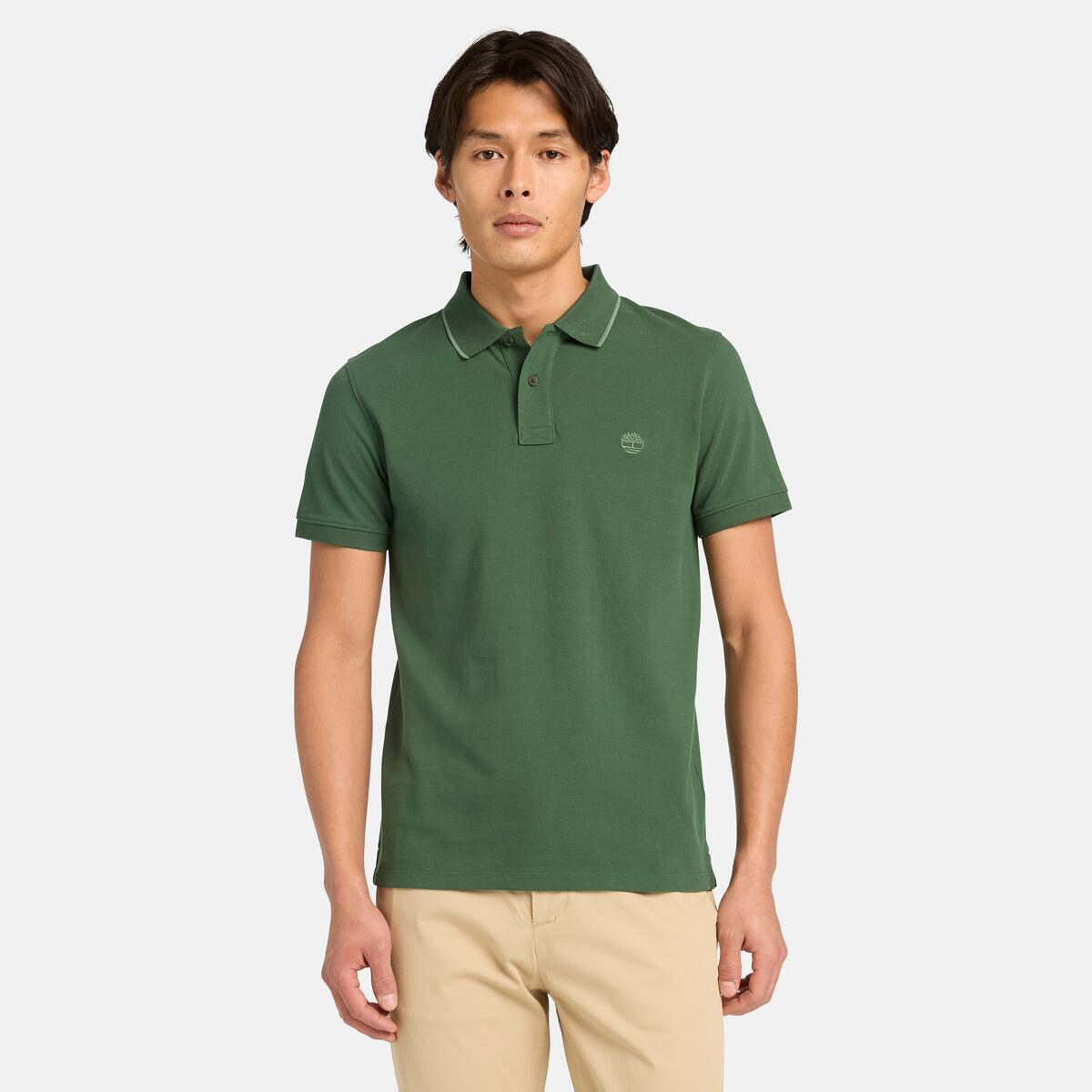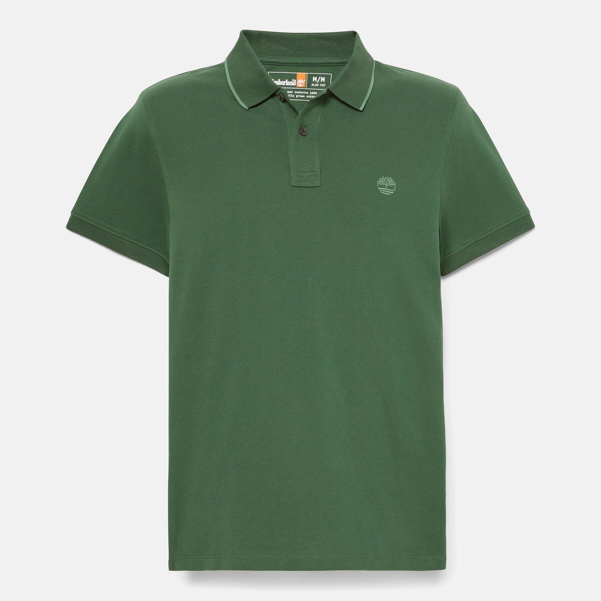 This refined warm-weather staple is made from 100% organically grown cotton sourced from farms that do not use genetically modified seeds and avoid the use of synthetic pesticides. It features a slim fit, classic polo neck, and an embroidered Timberland Tree logo.