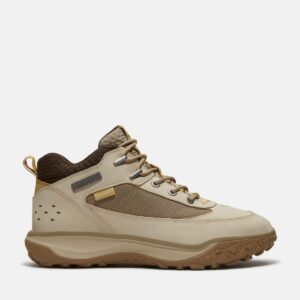 The Men’s Motion Access Mid Waterproof Sneaker sits right where craft and performance meet. Our Premium Timberland® leather and fabric upper is paired with a fully gusseted tongue and a TimberDry™ waterproof membrane to help keep your feet dry. Combine that protection with a Timbercush™ comfort system, an EVA footbed to help soften every step, and TimberGrip™ traction, and you’ve found a sneaker that can handle both movement and Mother Nature. Inside, there’s a ReBOTL™ fabric lining containing at least 50% recycled plastic.