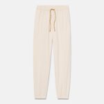 主布料選用厚磅刷毛毛圈布,腰部與褲腳採用羅紋設計,打造舒適且具細節感的休閒褲款。