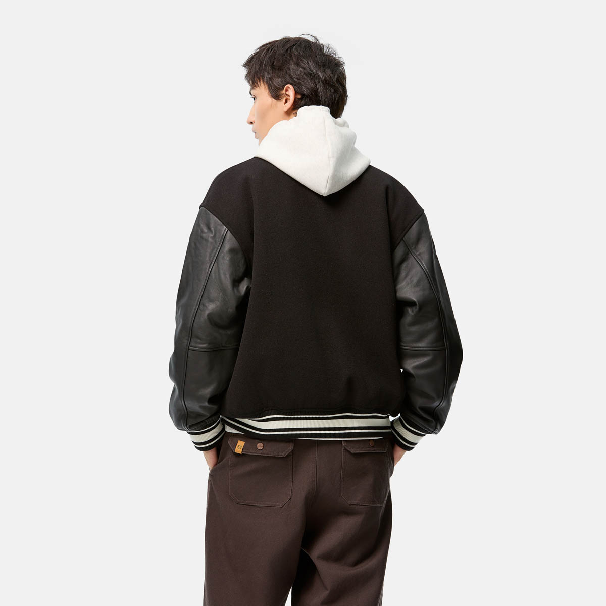 這款經典的大學風格棒球外套,採用經典的按扣設計。它的衣身和袖子採用特別的填充材質,能根據人體體溫變化進行調整,在旅途中兼顧穿著者的保暖與時尚。