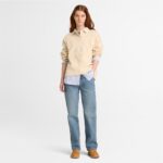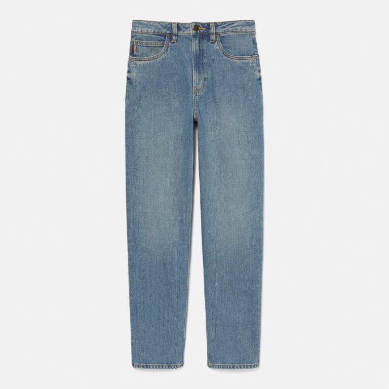 女款直筒牛仔褲將永恆風格與持久舒適結合,能夠輕鬆的在日常穿著。採用帶有些微彈性的棉混紡製成,具有直筒版型、五口袋與鈕扣式褲頭、褲檔開合。