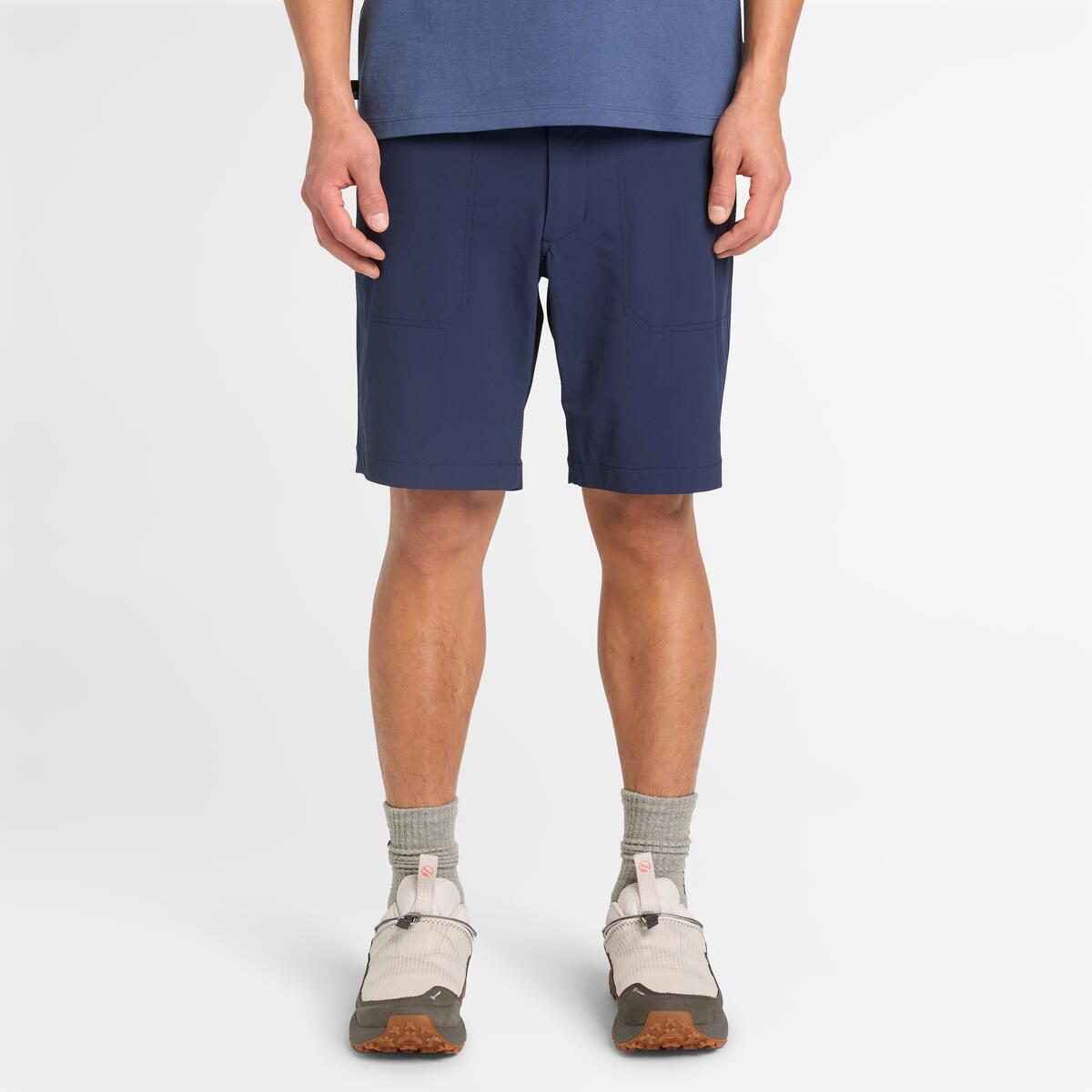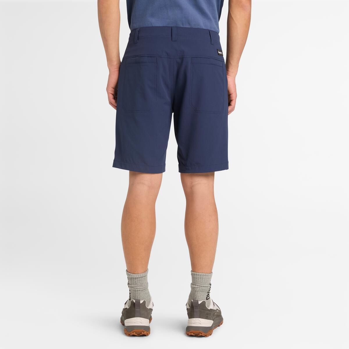 涼感快乾短褲結合 92% 尼龍與 8% 彈性纖維,提供透氣且四向彈力設計的舒適感。寬鬆版型增加你自由活動的空間,側邊與後口袋能夠將必需品放在身邊。設計包含編織徽章與安全的鈕扣式褲頭、褲檔開合。