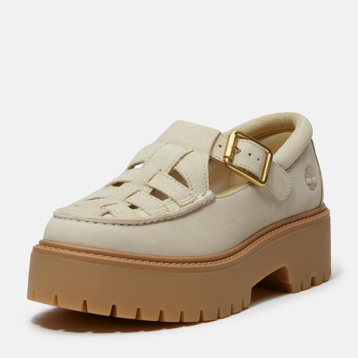女款 Stone Street 厚底瑪莉珍鞋是一款現代化的經典鞋款,靈活的風格讓你全天舒適。採用 Timberland® 優質皮革鞋面和包含 50% 再生 PET 塑膠製成的 ReBOTL™ 織物內裡。55% 橡膠外底採用來自永續農業農場的橡膠製成。OrthoLite® 鞋墊則提供緩衝舒適。