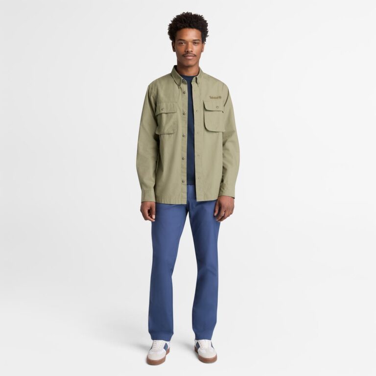 這款男款寬版長袖襯衫外套易於穿著與搭配。由 100% 棉製作而成,採用寬鬆版型增加活動便利性,具備兩個帶有翻蓋的胸前口袋與翻領式設計。
