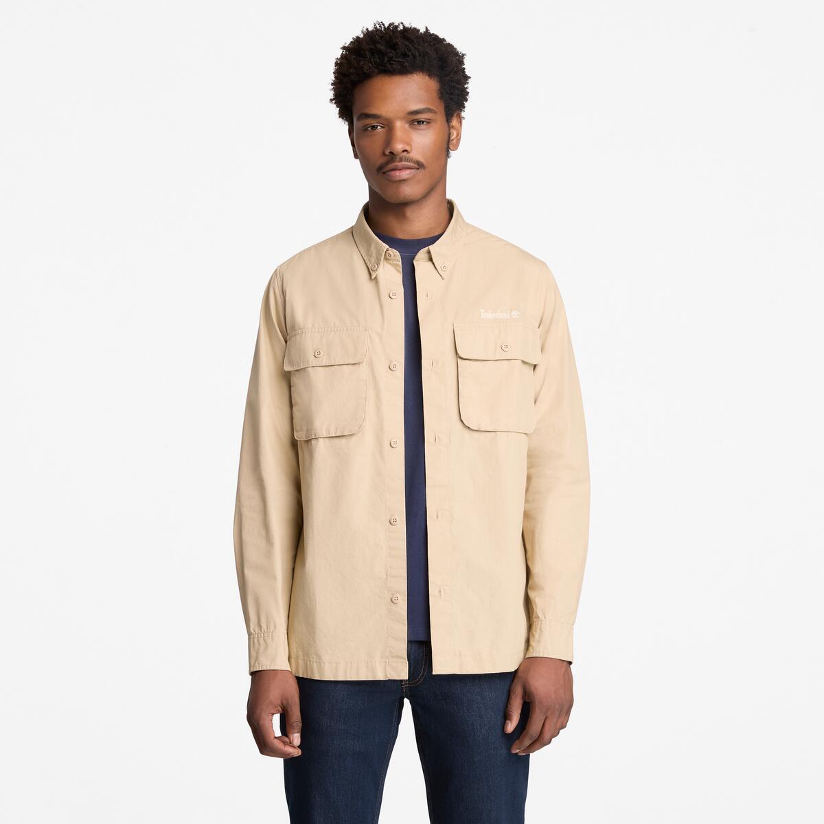 這款男款寬版長袖襯衫外套易於穿著與搭配。由 100% 棉製作而成,採用寬鬆版型增加活動便利性,具備兩個帶有翻蓋的胸前口袋與翻領式設計。