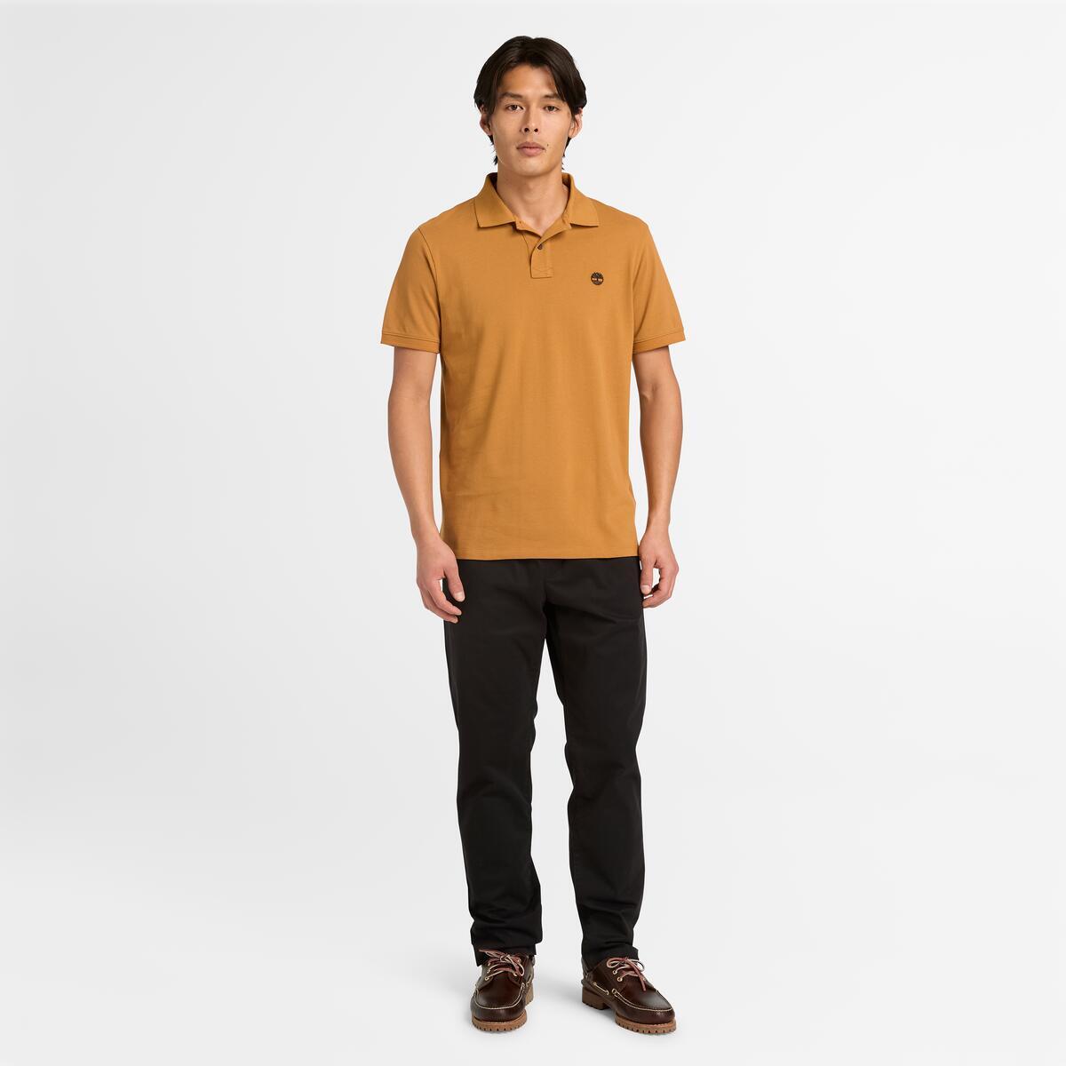 這款短袖 Polo 衫由 100% 棉質製成,採用正常版型,並帶有側邊開叉增加活動性與刺繡大樹LOGO,展現休閒感。