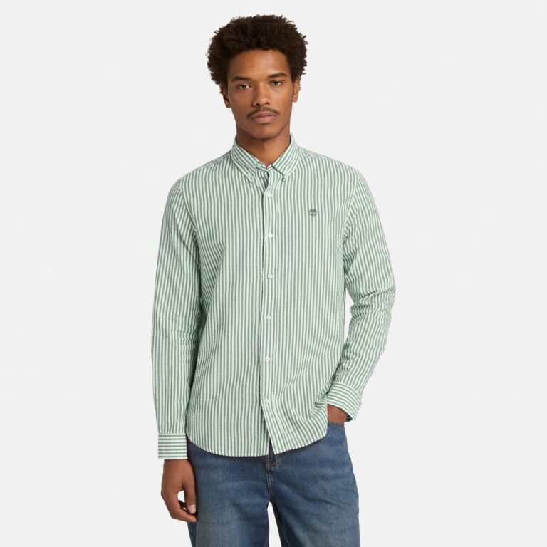 這款條紋長袖襯衫輕盈透氣,由 100% 棉以正常版型製作而成,具備經典翻領式設計與刺繡大樹LOGO。