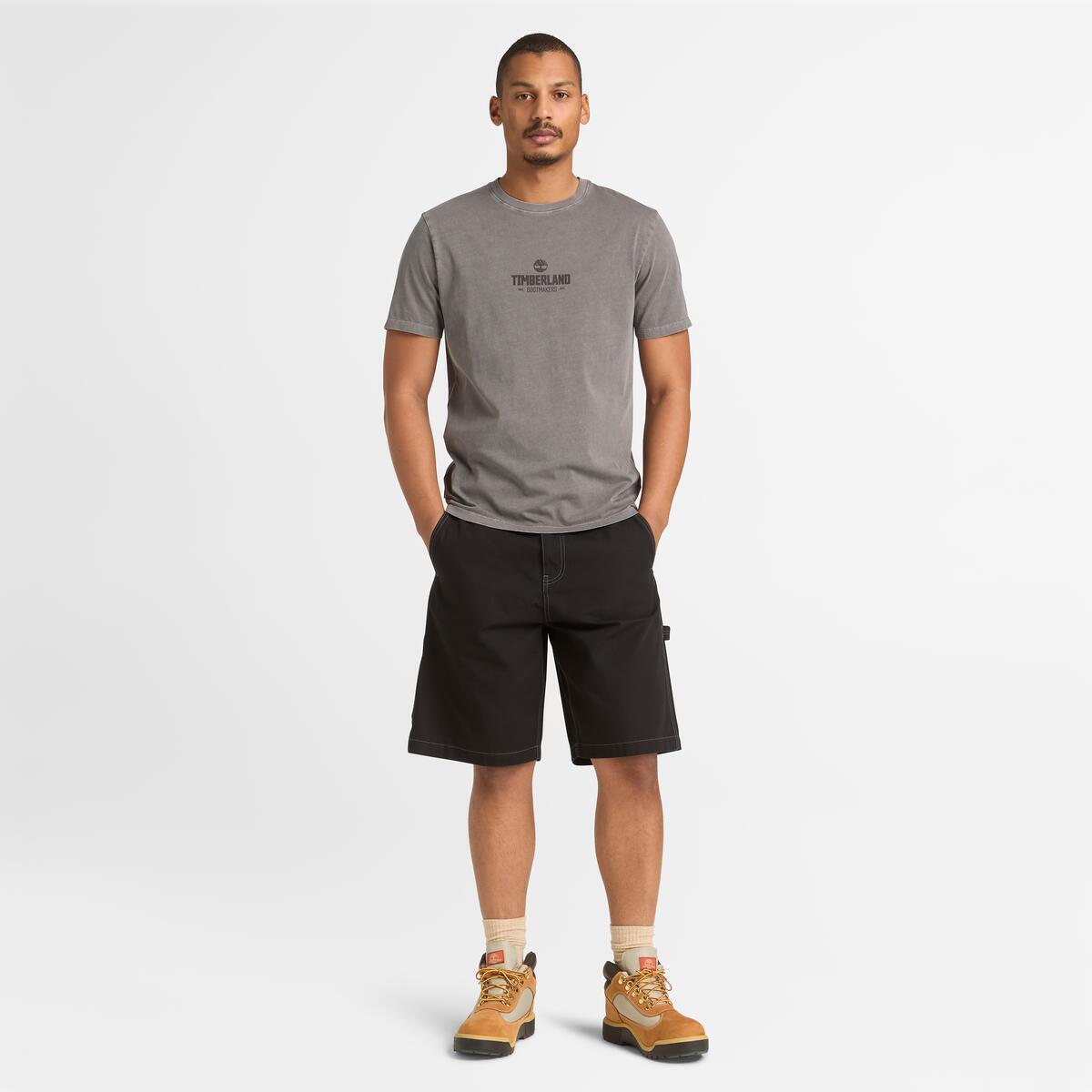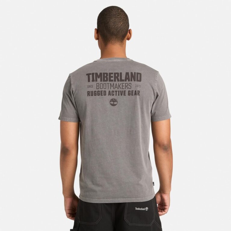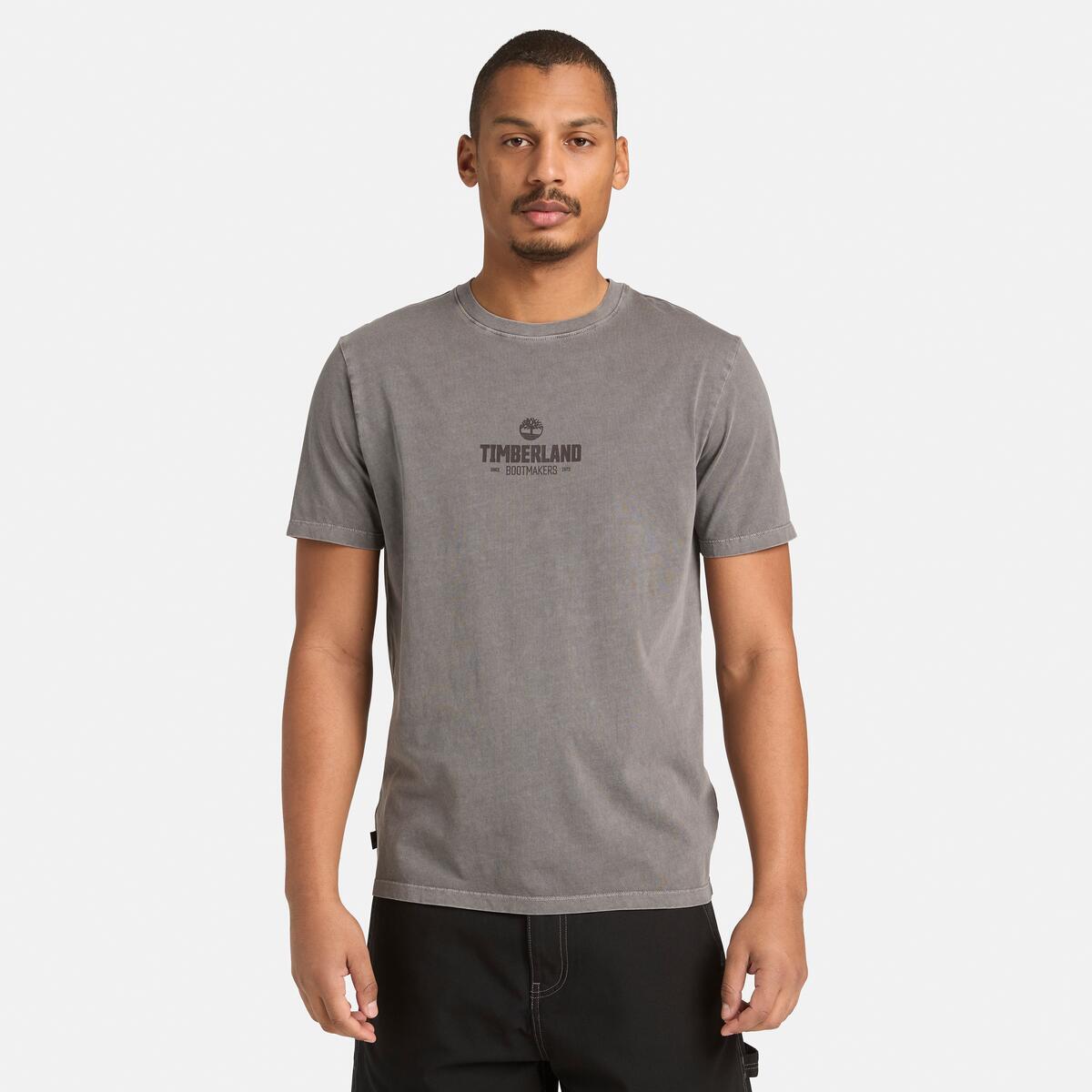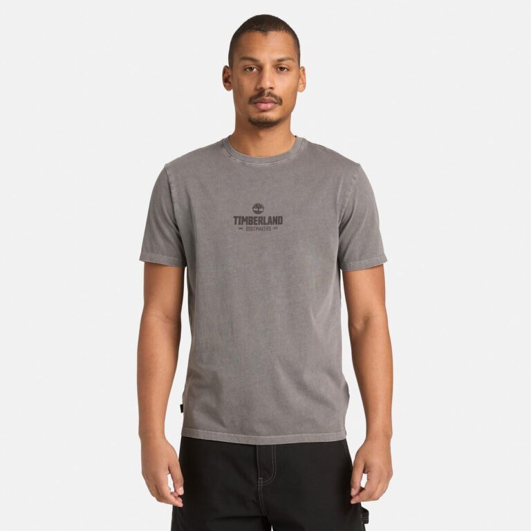 這款男款成衣染色短袖 T 恤以工藝與舒適為基礎,呈現經典版型。由 100% 棉以正常版型製成,正面與背面帶有粗獷的品牌圖案。